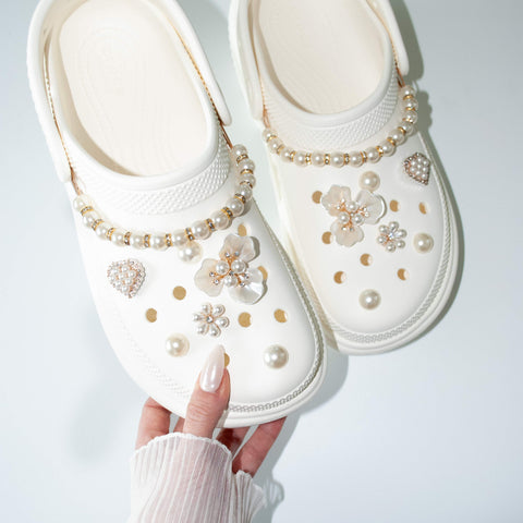 Bling Pearl Flower Shoe Charms Set - Mixed Size